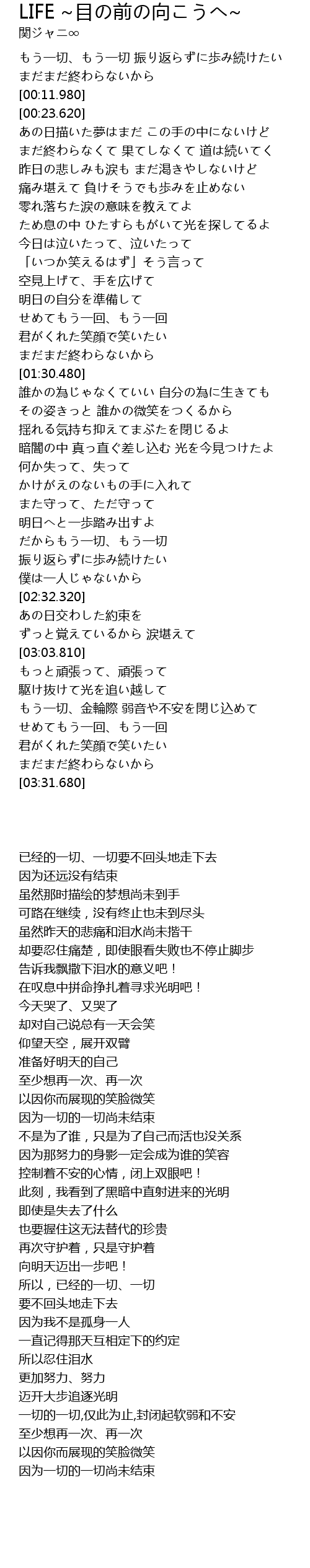 Life 目の前の向こうへ 歌詞 関ジャニ Mojim Com